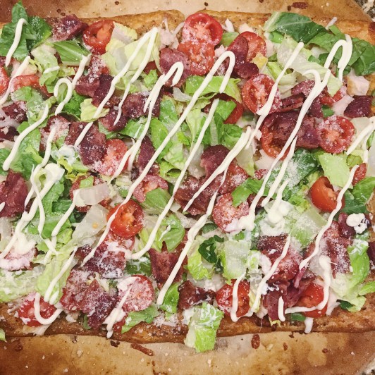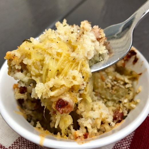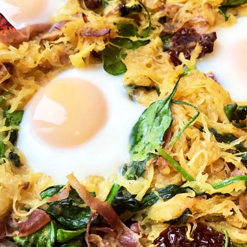 2. In a skillet (mine was full of bacon grease, if yours isn’t, put some EVOO in there) – plop your eggs in & cook your eggs however you like em. We love ours sunny side up, so for that all you do is cook the eggs over medium/medium-high heat and you aren’t going to flip em. Using a spoon, keep coating the egg in whatever oil is in the pan. Like I said, I re-used my bacon grease so just keep drenching the egg until the edges are crispy, the white are set and the yoke is still runny.