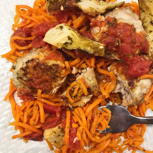 Seriously though, feel free to add whatever veggies you may already have. Don’t feel like you need to go to the grocery store just for some artichokes…throw in that bag of spinach that’s about to go bad or the leftover broccoli from last night’s dinner. Too plain for you? Add some fresh jalapeno or red pepper flakes for a little heat . Use what ya got and like I said, just pretend the noodles AREN’T made of carrots ;)